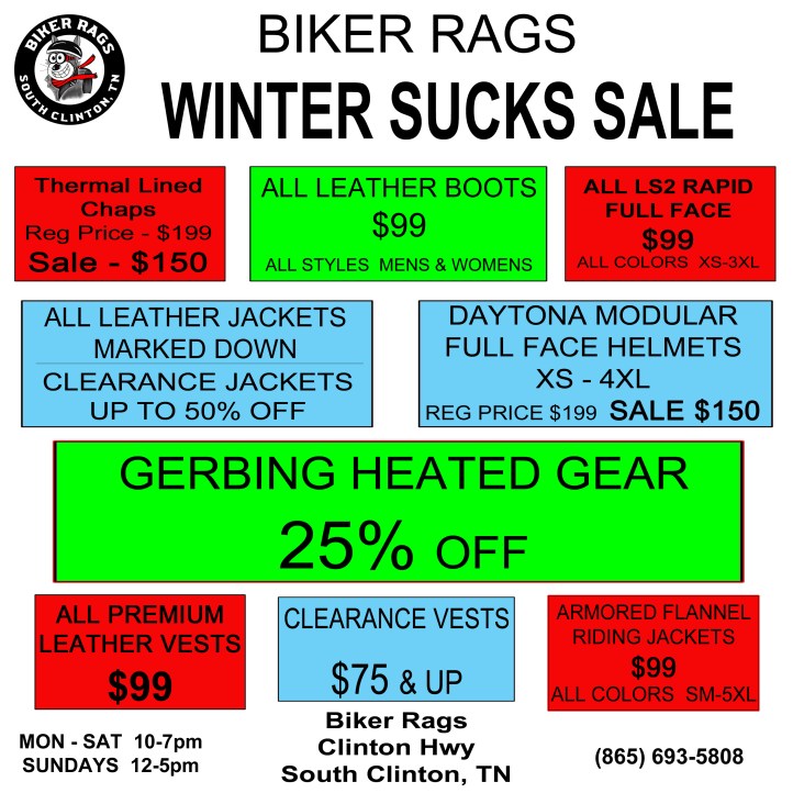 Hello! We are Jeff and Pam Huggins and have been in business since 1994. We started Biker Rags in a small store front on Chapman Highway in South Knoxville and moved to our location on Kingston Pike in 1996. Then on June 8, 2020- Biker Rags had a fire and lost almost everything. We are now located in beautiful South Clinton, TN. Come see us and enjoy the ride to our new location.