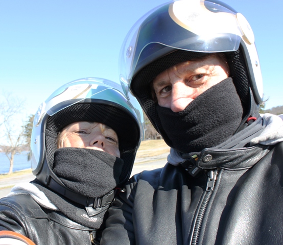 We left Biker Rags around 10:30 am. The temperature was around 45 degrees and the skies were sunny and clear. We both wore our heavy leather jackets, thermal lined chaps, Gerbing’s heated jacket liners and heated gloves, 3/4 Pilot helmets and face masks.