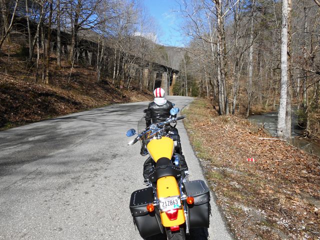 When we got back on the bikes, we stayed on 27 which is a beautiful and scenic route. This road must have been forged by a motorcycle rider! We stopped for photos before arriving in Harriman.