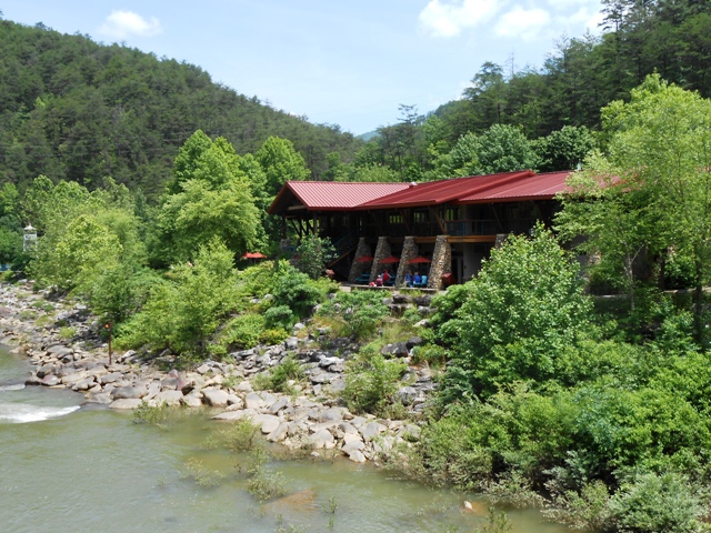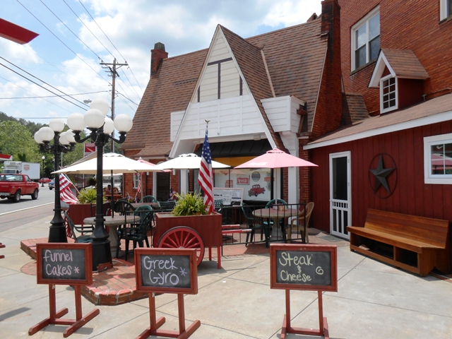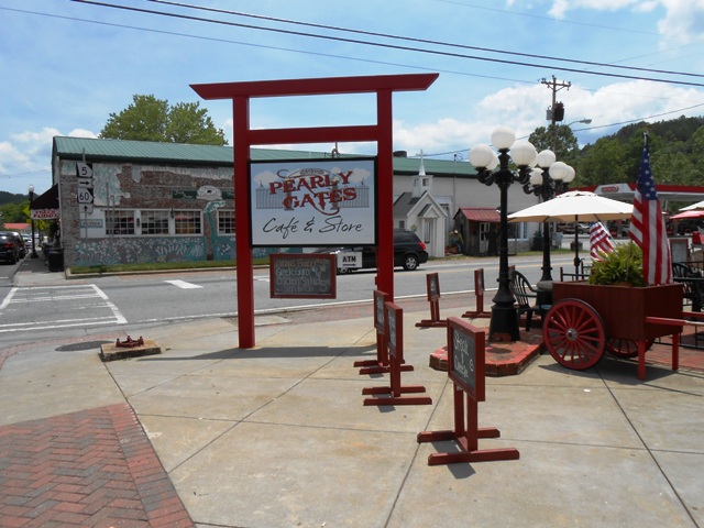 Copperhill is a quaint little tourist town with several places to eat. We decided on The Pearly Gates Cafe which sits right on the line.