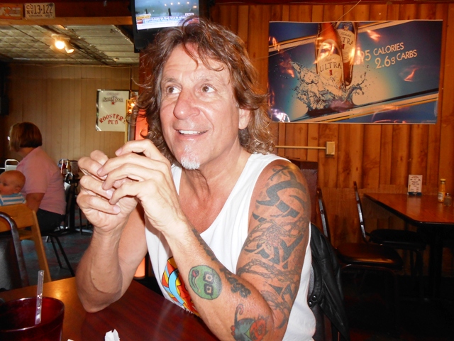 We finally stopped and asked a guy who was mowing his lawn where he suggested we eat. He told us to check out Rooster’s Pub, so we turned around, found the Pub and parked the bikes.
