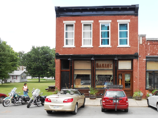 After gawking a short while, we got on the bikes and headed back down toward Tellico Plains. The rain traveled with us down the Skyway, but stopped right before we reached our lunch destination, Tellico Grains Bakery.