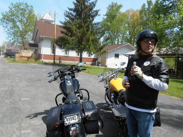 That’s Pamo on her Sportster.