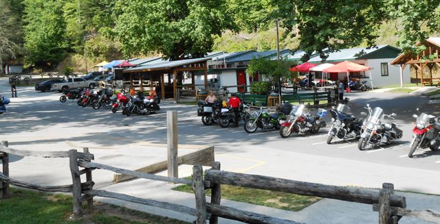 After the dam we rode through Fontana Village and then continued on 28 which took us right into the parking lot of the Deals Gap store on the Dragon.