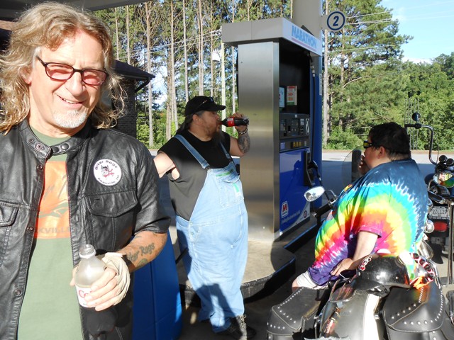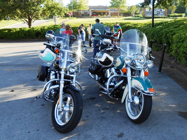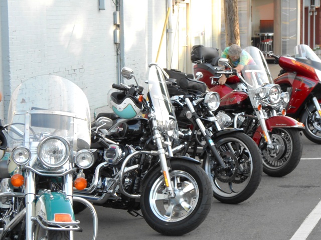 On Saturday, June 28th, we had a Saturday Night Fun Run. We started out here at Biker Rags with free pizza and soft drinks before our ride. The weather had been off and on rain all day so the turn out was small. By the time we got ready to ride, the rain had cleared out and we had sunny skies.