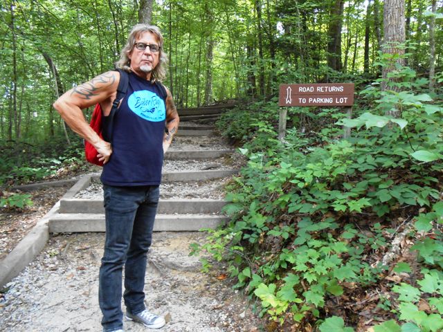 We arrived at Burgess Falls State Park right at 3pm about 165 miles into our trip. We parked in the paved lot that was over half full with visitors. A nice restroom area was available and the park had nicely visible trail markers.