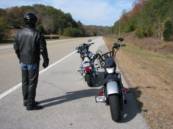 After walking around awhile, we got back on the bikes and rode through Lenoir City and into West Knoxville. We stopped in Biker Rags to get a drink and see Silas.