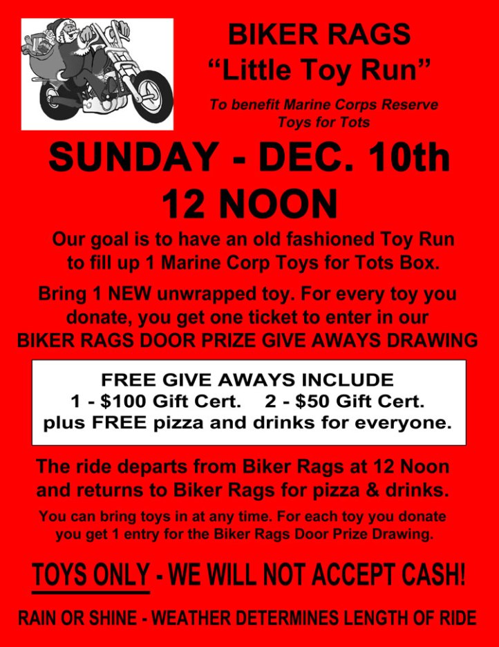 Be sure to join us for our “Little Toy Run” on December 10th.