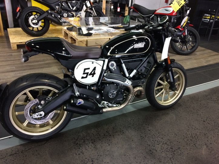 Our entire ride was about 75 miles and took us around three hours. We really enjoyed looking at all the bikes at Mountain Motorsports and eating a fresh burger at the Crossroads Cafe. Flurries be damned! It was a great day of riding.